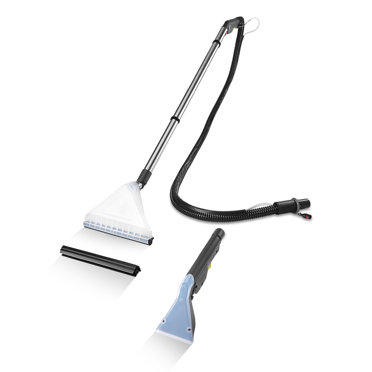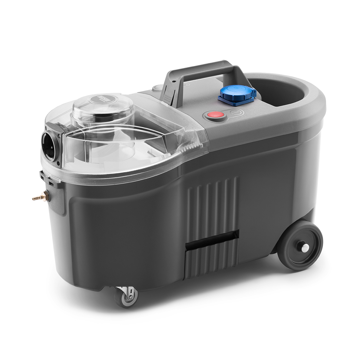 PROFI P50.1 EWC przeznaczony jest do współpracy z elektroszczotką PROFI P55. Może on również pracować identycznie jak PROFI P50.1, w zależności od doboru rodzaju wyposażenia. Dzięki zastosowaniu silnika By-Pass AMETEK oraz szwajcarskiej pompki Gotec (4,8 bar) PROFI P50.1 EWC zapewnia skuteczne nanoszenie środka czyszczącego oraz pozostawia powierzchnie niemal suche, dzięki czemu powierzchnie czyszczące praktycznie od razu nadają się do użytku. Duże zbiorniki wody czystej i łatwo wyjmowalny zbiornik wody brudnej pozwalają na czyszczenie przy jednorazowym napełnieniu dużej powierzchni. Przezroczysta pokrywa na zbiorniku wody brudnej umożliwia kontrolę poziomu wody. PROFI P50.1 EWC doskonale sprawdzi się w firmach sprzątających, hotelach, komisach samochodowych przy czyszczeniu autobusów, busów itp. Wyposażony w rury chromoniklowe z ergonomicznym uchwytem zapewniającym komfort podczas czyszczenia podłóg, ssawkę małą, ssawkę dużą do dywanów oraz nakładkę na ssawkę dużą, umożliwiającą czyszczenie powierzchni twardych.