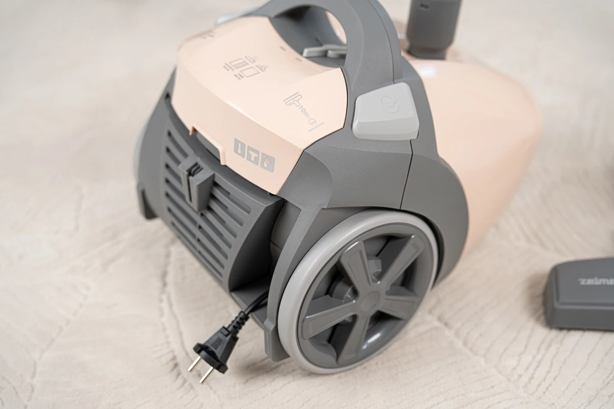 Odkurzacz został wyposażony w gumowane kółka, które chronią podłogi przed zarysowaniami i śladami. Dzięki nim możesz bez obaw odkurzać zarówno panele, parkiety, jak i delikatne powierzchnie drewniane. Dodatkowo gumowana powłoka sprawia, że urządzenie porusza się płynnie i ciszej, zwiększając komfort codziennego sprzątania.