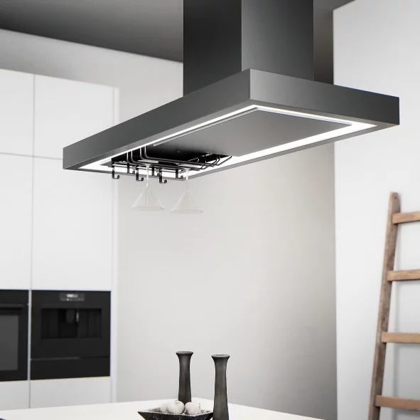 System modułowy umożliwia zakup wybranych elementów, takich jak wieszak na kieliszki czy haczyki na kubki. To Ty decydujesz co może Ci się przydać! Idealnie równa powierzchnia okapu może się sprawdzić jako dodatkowa półka na rzeczy, które zawsze warto mieć pod ręką w kuchni.