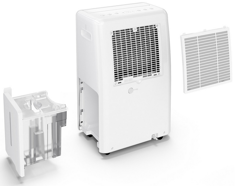 Kompaktowe urządzenie z eleganckim białym wykończeniem. Urządzenie jest odpowiednie do pomieszczeń o szerokim zakresie rozmiarów i będzie pasowało do dowolnego wystroju wnętrza.