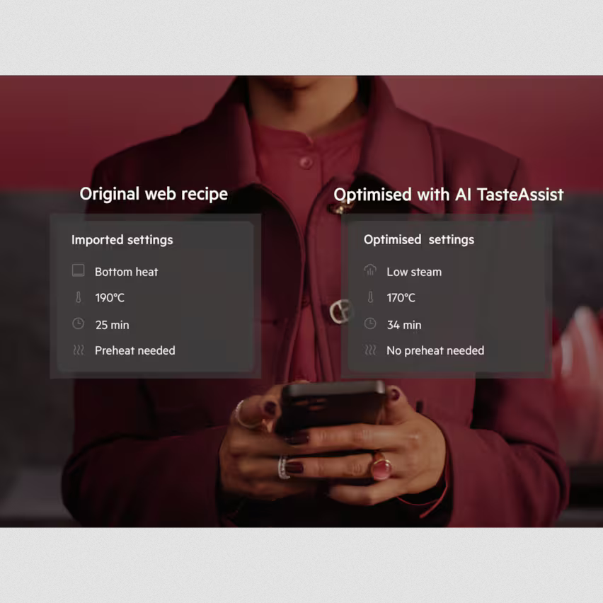 Asystent TasteAssist zmienia tradycyjne przepisy, aby użyć pary. Wystarczy, że przez aplikację wyślesz przepis z Internetu do piekarnika, a sztuczna inteligencja zoptymalizuje czas, temperaturę i tryb, pomagając Ci przygotować bardziej odżywcze, pyszne dania przy mniejszym zużyciu energii.