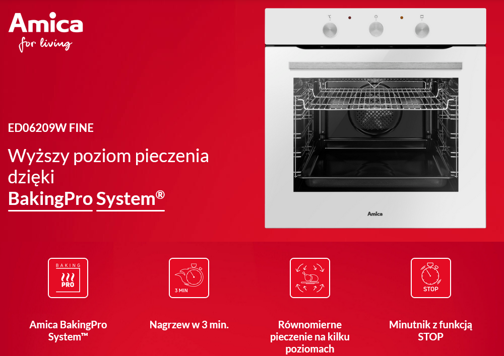 Szorowanie piekarnika to zajęcie, za którym z pewnością nie przepadasz. By ułatwić proces czyszczenia, wnętrza piekarników Amica pokryte zostały specjalną Emalią łatwoczyszczącą EasyClean pozbawioną porów i zagłębień sprzyjających osadzaniu się brudu i tłuszczu. Od teraz czyszczenie piekarnika będzie bajecznie proste. Ułatwiaj sobie życie! Nie trać zbyt dużo czasu na sprzątanie! Spędź go z bliskimi lub rozwijając swoje zainteresowania.
