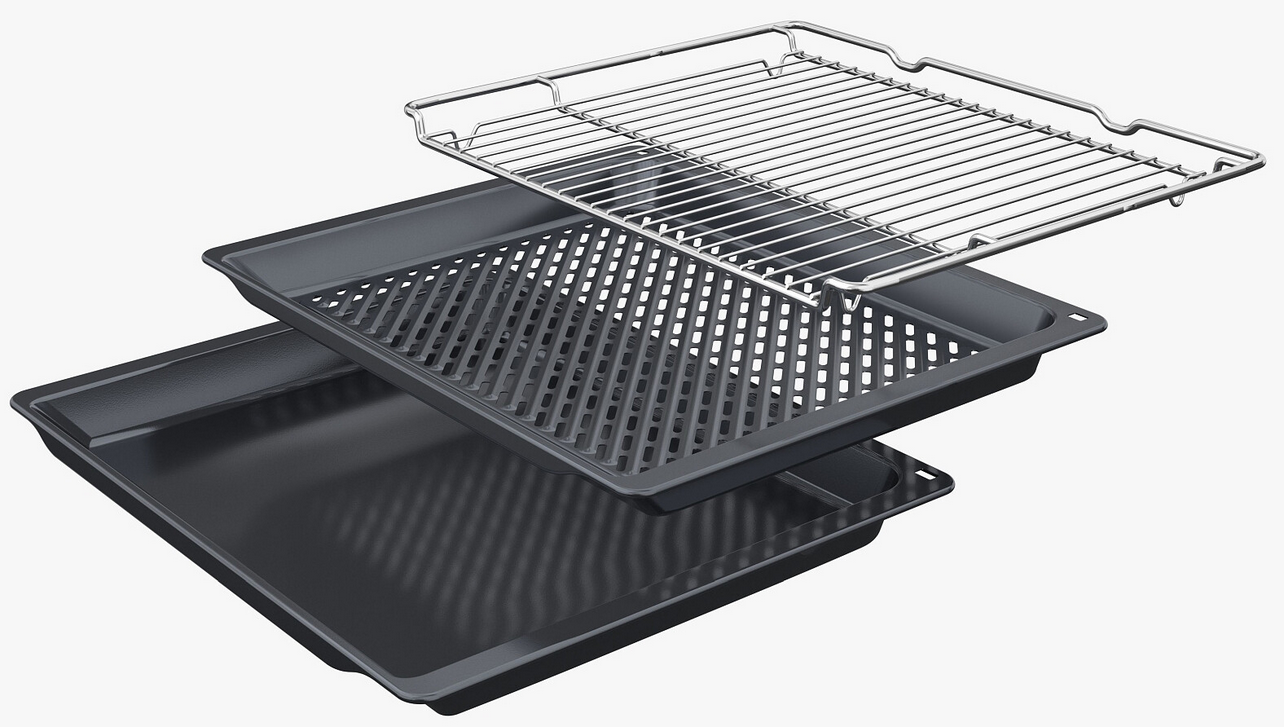 1 x Ruszt kombinowany, 1 x Brytfanka (blacha) uniwersalna, 1 x Blacha Air Fry