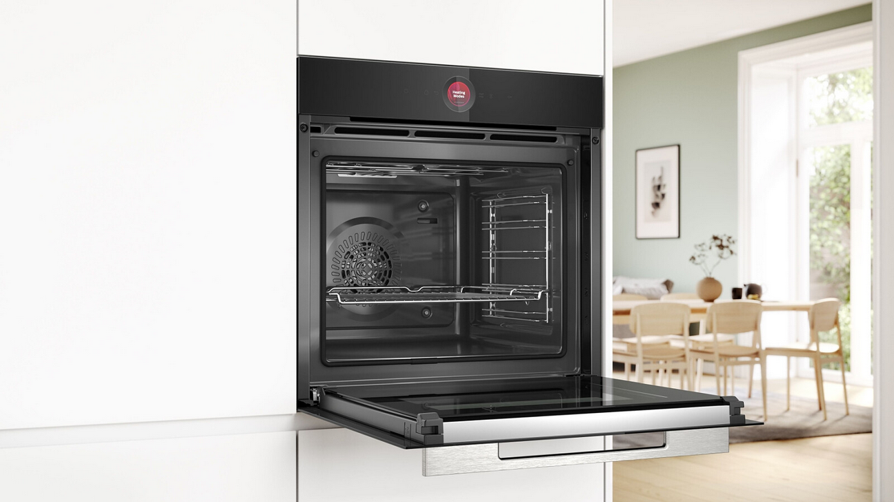 Innowacyjny cyfrowy pierścień sterujący sprawia, że gotowanie jest łatwiejsze niż kiedykolwiek. Przy pomocy niewielkich obrotów wewnętrznego pierścienia możesz uzyskać dowolne ustawienia swojego piekarnika, używając zaledwie jednego palca. Pomocą służy Ci duży panel dotykowy TFT o wysokiej rozdzielczości, z czytelnym tekstem i przyciskami sensorycznymi. Wyraźne obrazy oraz komunikaty tekstowe prowadzą Cię przez każdy krok, gdy nawigujesz pomiędzy opcjami różnych programów. Dzięki temu masz wszystko na oku i w pełni panujesz nad działaniem piekarnika.