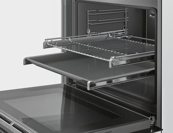 Nasz system prowadnic jest bezpieczny i prosty w użyciu. Umieszczanie potraw na poziomie wyposażonym w teleskopowe prowadnice jest znacznie prostsze. Nie trzeba już sięgać do gorącego wnętrza, aby ocenić stan potrawy.