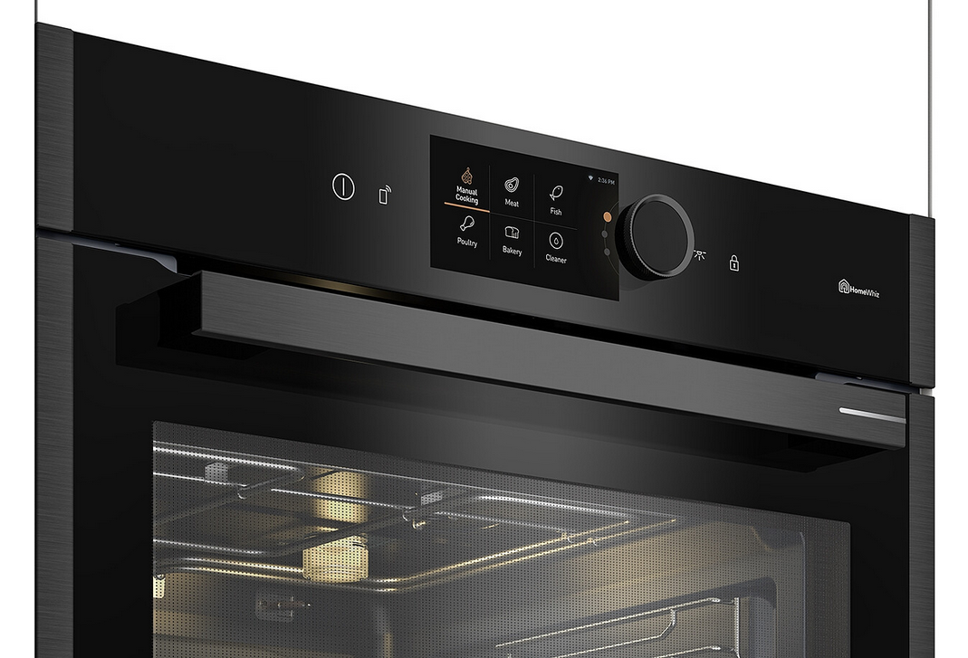 Urządzeniem możesz nawigować nie tylko z wykorzystaniem panelu sterującego, lecz także z pozycji swojego smartfona. Wystarczy, że zainstalujesz odpowiednią aplikację, a będziesz mógł w każdym momencie włączyć lub wyłączyć piekarnik, nastawić czas i temperaturę oraz kontrolować proces pieczenia, nawet gdy będziesz poza domem. Jeżeli będziesz chciał wyczyścić wnętrze piekarnika, wystarczy że wlejesz odrobinę wody do odpowiedniego pojemnika i uruchomisz program czyszczenia parowego. Pod wpływem wysokiej temperatury woda zamieni się w parę wodną, która efektywnie zmiękczy zabrudzenia, dzięki czemu ułatwi ich wytarcie ze ścianek. Umieszczone we wgłębieniach ścianek piekarnika prowadnice drabinkowe usprawniają wsuwanie blach do komory pieczenia i wysuwanie ich. Poza tym można je łatwo zdemontować, by umyć wnętrze piekarnika. Prowadnice są bardzo istotne dla naszego bezpieczeństwa i wygody użytkowania. Właśnie dlatego producent zamontował w piekarniku prowadnice teleskopowe, które zapewniają bezpieczne wysunięcie blachy jednym ruchem ręki. Co ważne, takie prowadnice są stabilne i zachowują idealny poziom, a zatem nie ma ryzyka upuszczenia naczynia na podłogę i poparzenia sobie rąk. W urządzeniu producent zamontował oświetlenie halogenowe, które emituje jasne światło. To sprawia, że efektywnie oświetla środek komory, pozwalając monitorować piekącą się potrawę.