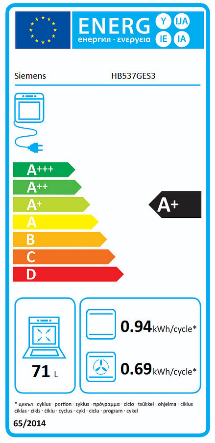 - Pojemność użytkowa (komory) - NOWA DYREKTYWA (2010/30/EC): 71 l