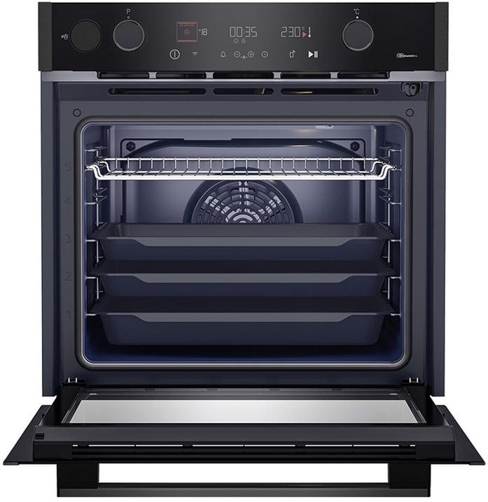 Standardowa głębokość urządzenia pasuje do większości rodzajów kuchennej zabudowy. Przed jego zakupem sprawdź format Twojej szafki, żeby dopasować go w odpowiednie miejsce. Pojemność piekarnika jest odpowiednia do podstawowych zastosowań. Bez trudu przygotujesz w nim potrawy dla wszystkich domowników. Opcje tego modelu są wskazywane poprzez sterowanie dotykowe. Zamiast tradycyjnych pokręteł wykorzystano tutaj panel reagujący na dotyk. Wystarczy delikatne naciśnięcie wybranego pola, żeby uruchomić funkcje urządzenia. Piekarnikiem możesz nawigować nie tylko z wykorzystaniem panelu sterowania, ale również ze swojego smartfona. Wystarczy, że zainstalujesz dedykowaną aplikację, a będziesz mógł w każdym czasie uruchomić lub wyłączyć piekarnik, nastawić czas i temperaturę oraz kontrolować proces pieczenia, nawet gdy będziesz poza domem.