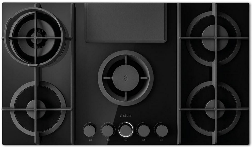 Płyta gazowa z okapem ELICA NikolaTesla Flame BL/A/88, czarne szkło