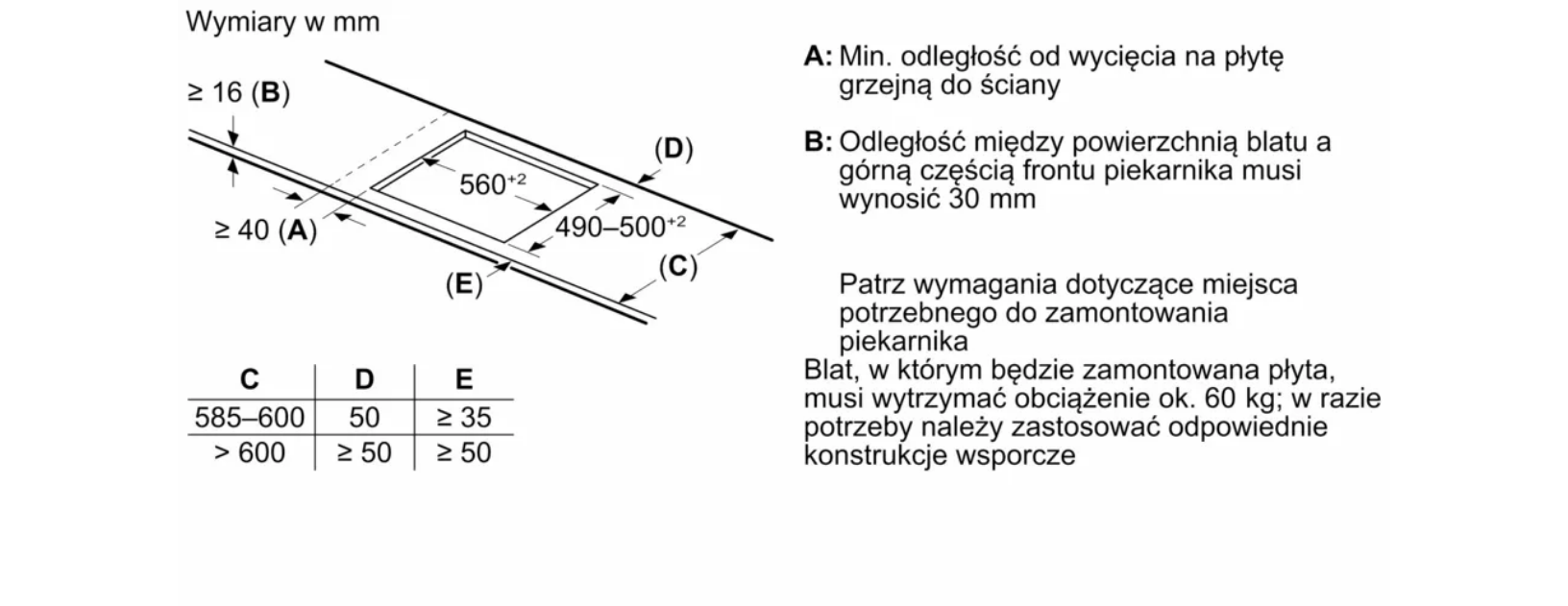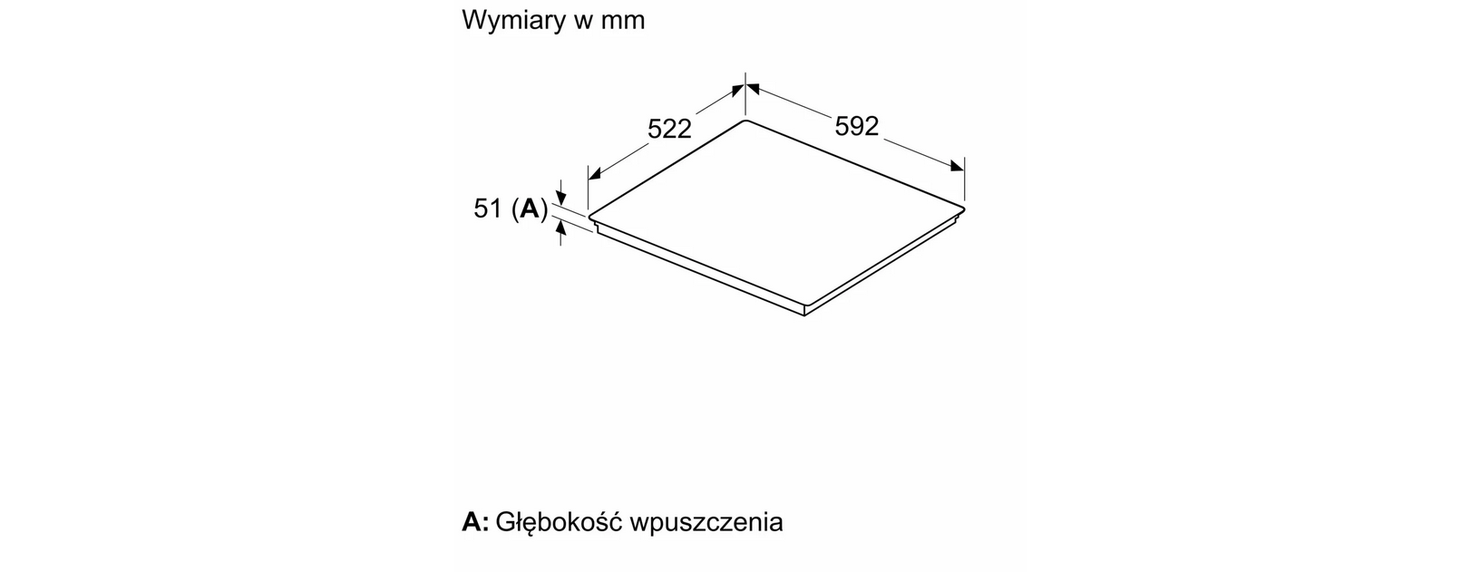 60 cm Czarny, montaż nablatowy, płyta bez listew