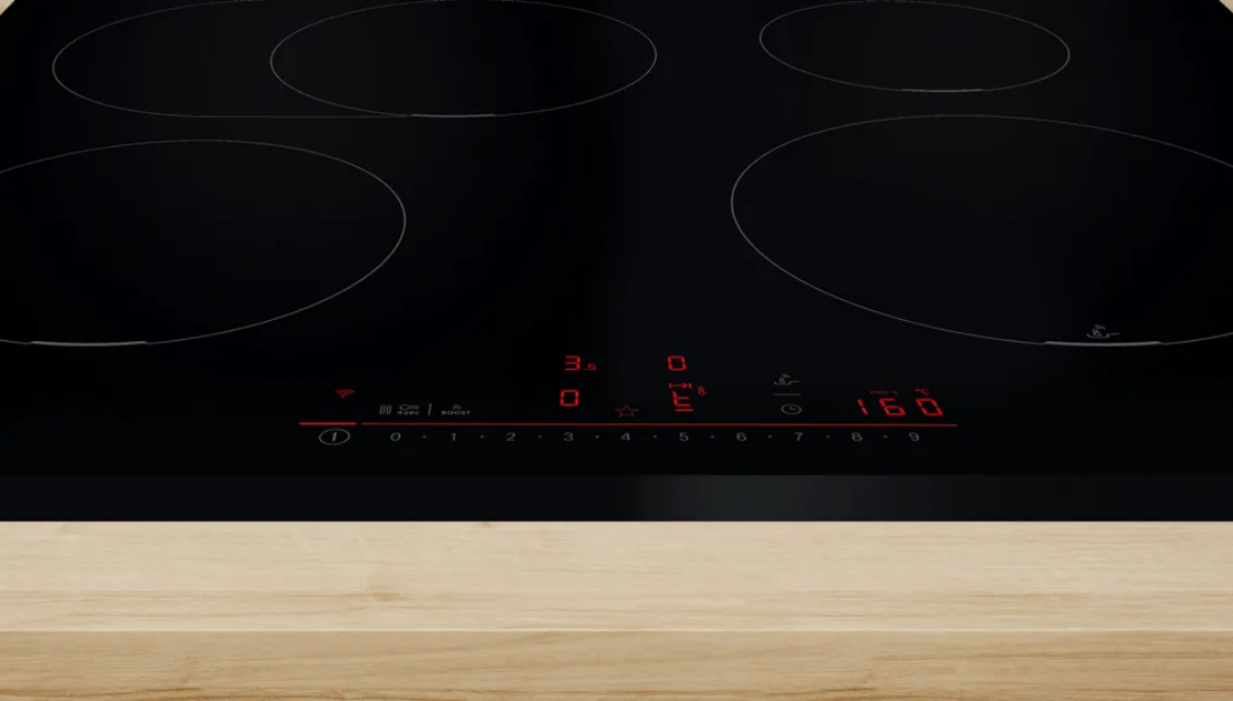 Teraz codzienne czynności, takie jak gotowanie idealnych jajek (dla Ciebie to dokładnie 5 minut i 45 sekund), stają się jeszcze łatwiejsze. Za pomocą przycisku Ulubione można zapisać idealną kombinację ustawień, takich jak poziom mocy i czas. Możesz też dodać sterowanie oświetleniem połączonego okapu. Wystarczy, że połączysz płytę kuchenną z kontem Home Connect, aby wygodnie rozpocząć dzień.