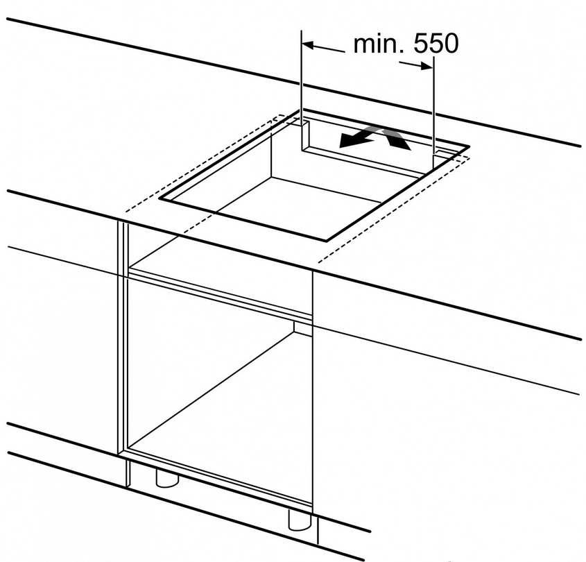 Wymagane wymiary montażowe wnęki (WxSxG mm) : 51 x 560 x (490 - 500)
