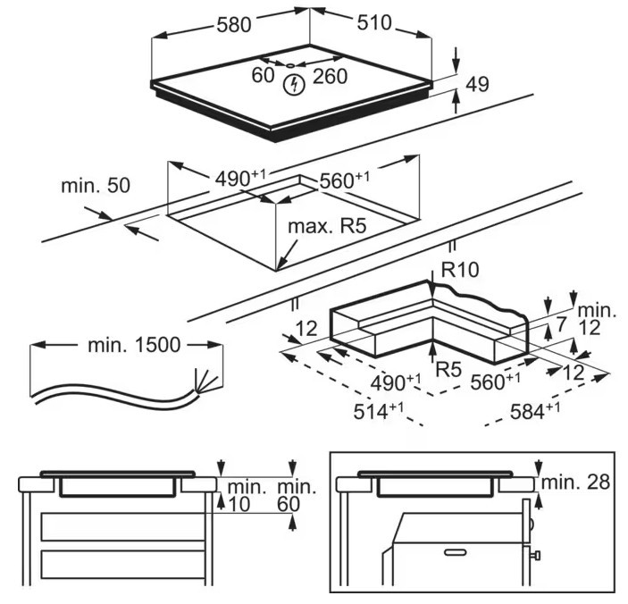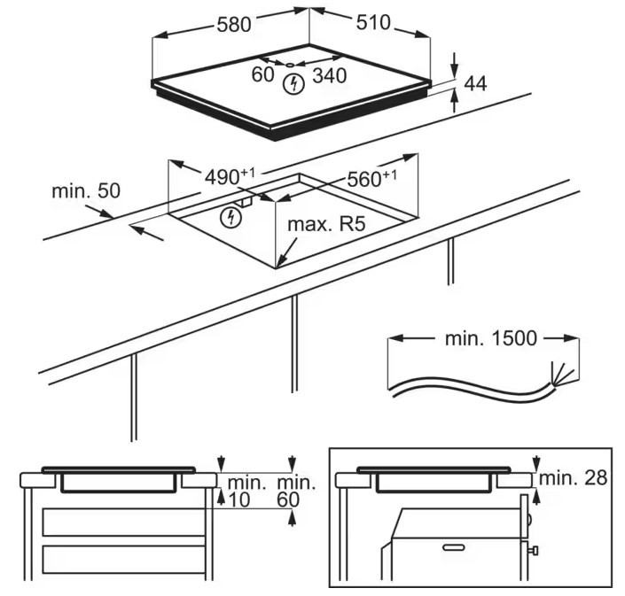 Wymiary wycięcia (W x S x G) [mm]: 44x560x490