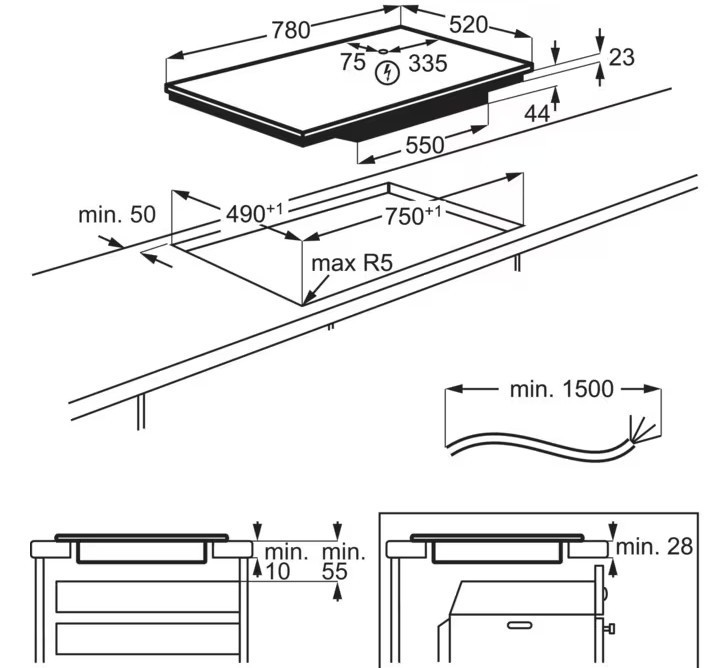 Wymiary wycięcia (W x S x G) [mm]: 44x750x490