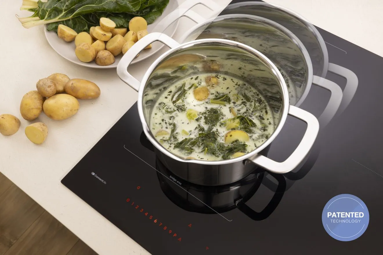 Inteligentne czujniki i algorytmy płyty indukcyjnej monitorują temperaturę naczyń kuchennych, a dzięki precyzyjnej regulacji mocy nasze programy automatycznego podgrzewania, topienia, smażenia i gotowania (Warm, Melt, Simmer, Grill, Fry i Boil) zapewniają wyjątkowe rezultaty.