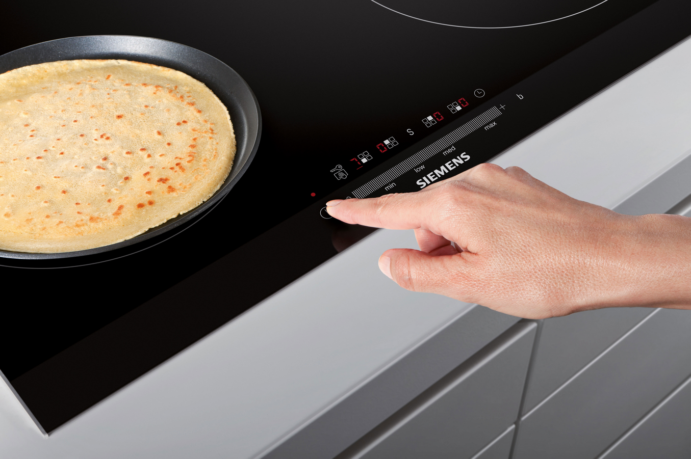 Dzięki kontrastującemu, czytelnemu wyświetlaczowi obsługa płyty Siemens jest dziecinnie prosta.