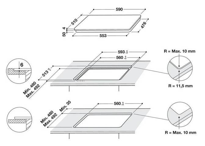 Możliwość montażu w otworze po płycie gazowej