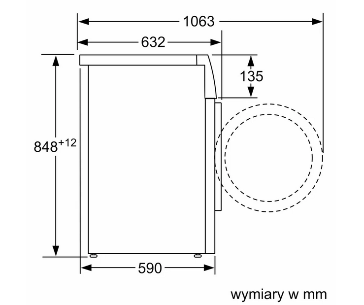 Głębokość urządzenia przy drzwiach otwartych pod kątem 90° (mm)