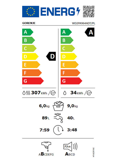 Pralko-suszarka wyróżnia się szerokością 595 mm oraz wysokością 845 mm, co sprawia, że doskonale wpasuje się w przestrzeń każdego mieszkania. Urządzenie wyposażono w bezszczotkowy silnik PowerDrive, który zapewnia cichą i efektywną pracę, przy jednoczesnym ograniczeniu zużycia energii. Model dysponuje klasą efektywności energetycznej D dla prania i suszenia oraz A dla samego prania, co czyni go ekonomicznym wyborem. Zastosowane zabezpieczenia, takie jak blokada rodzicielska i sygnał akustyczny, zwiększają bezpieczeństwo użytkowania. Zużycie wody dla cyklu prania i suszenia wynosi 89 L, co jest optymalnym wynikiem w tej kategorii. Wszystkie te cechy sprawiają, że pralko-suszarka z technologią SteamTech to świetna inwestycja.