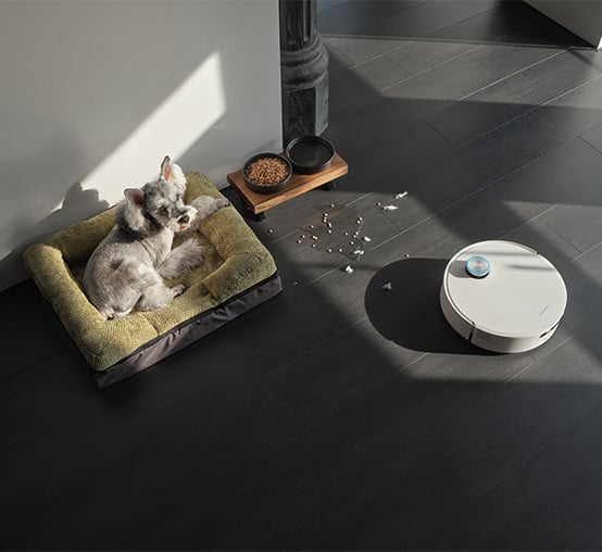 Dreame Aqua10 Ultra Roller Complete to robot przyjazny zwierzętom. W trybie Pet Care 4.0 usuwa więcej sierści i większe zabrudzenia, a także oferuje dodatkowe funkcje: robienie zdjęć, nagrywanie filmów, lokalizację zwierząt, tworzenie mapy ich aktywności oraz interakcję głosową.