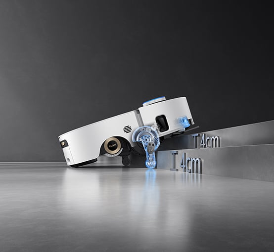 Dzięki systemowi FlexRise Air Suspension robot pokonuje progi do 4,2 cm, dywany do 3 cm grubości oraz przeszkody do 8 cm (dwustopniowo). Dodatkowo obniża się do 98 mm, aby dotrzeć pod meble. Technologia TripleUp Tech umożliwia automatyczne dostosowanie elementów robota – rolka unosi się o 14 mm, szczotka boczna o 10 mm, a główna szczotka o 5 mm. Taka konstrukcja pozwala skutecznie oddzielać zabrudzenia mokre od suchych, chronić dywany przed wilgocią i zapobiegać smugom.