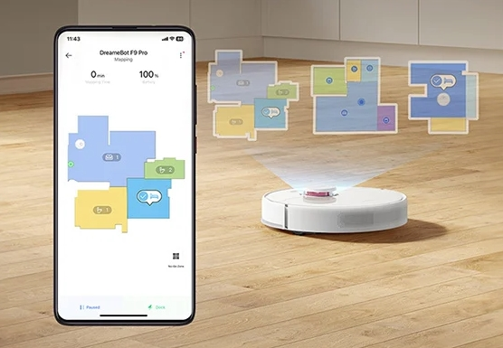 Gotowe mapy pomieszczeń znajdziesz w aplikacji Dreamehome, za pomocą której możesz na przykład dzielić pokoje na segmenty i planować harmonogramy sprzątania. Jeśli nie chcesz, aby robot miał dostęp do jakiegoś miejsca w domu, na przykład do kącika zabaw dziecka, po prostu stwórz dla niego strefę zakazaną. Masz również możliwość wyboru spośród 4 poziomów ssania. Aplikacja pozwala też zmieniać tryby sprzątania i przełączać się między różnymi poziomami przepływu wody.
