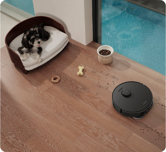 L40 Ultra AE doskonale sprawdza się w domach, w których mieszkają zwierzęta. Unika misek, zabawek i innych akcesoriów pupili, a funkcje Dynamic Spot-Cleaning i Pet-Finding Mode ułatwiają szybkie czyszczenie zabrudzonych miejsc oraz odnajdywanie zwierzaka. Tryb Large Particles Boost automatycznie aktywuje się w momencie wykrycia większych odpadków – takich jak żwirek czy rozsypana karma.