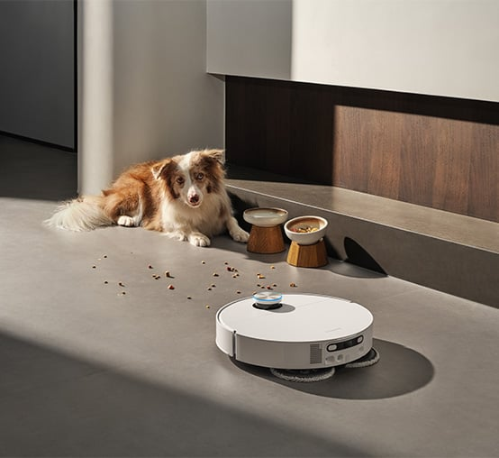 Tryb Pet Care 4.0 został zaprojektowany specjalnie z myślą o domach ze zwierzętami. Robot rozpoznaje obecność pupili, unika ich podczas pracy i wykonuje dodatkowe przejazdy tam, gdzie gromadzi się sierść. Radzi sobie również z rozrzuconą karmą czy żwirkiem, automatycznie dostosowując siłę ssania i trajektorię jazdy. Co więcej, możesz zdefiniować, jak ma reagować w pobliżu misek i kuwet, a dzięki funkcji połączeń wideo możesz obserwować pupila, zrobić mu zdjęcie lub uspokoić go, gdy zajdzie taka potrzeba. Nie musisz też obawiać się o swoją prywatność – certyfikat TÜV SÜD potwierdza, że zarówno obrazy, jak i nagrania rejestrowane przez urządzenie nie trafiają do chmury. Wszystkie dane są szyfrowane zgodnie z normą ETSI EN 303 645