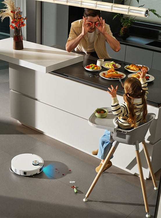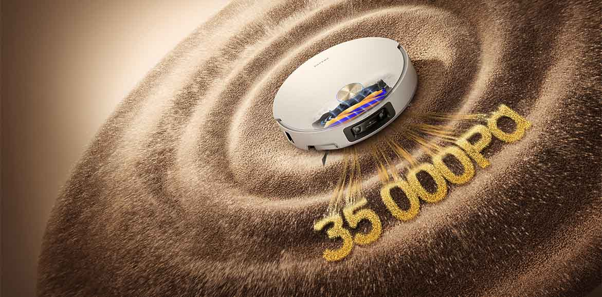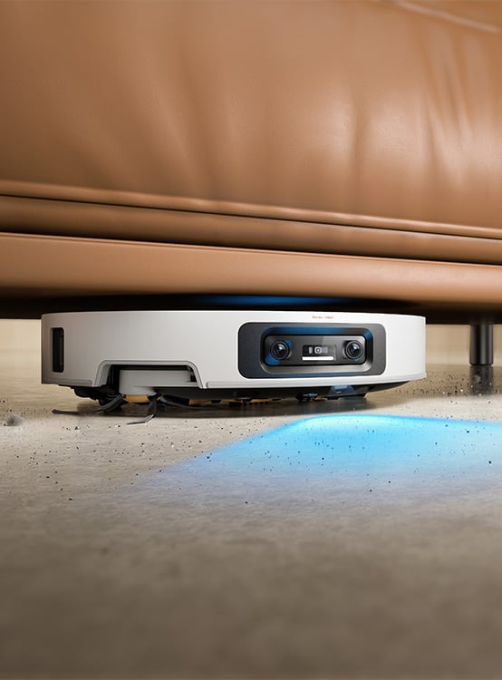System VersaLift Navigation pozwala robotowi dynamicznie dopasowywać sposób skanowania przestrzeni do aktualnego otoczenia. Gdy porusza się po otwartej przestrzeni, korzysta z unoszonego czujnika DToF, który tworzy precyzyjne mapy 360° w kilka sekund. Gdy wjeżdża pod niskie meble, czujnik zostaje schowany, a robot przełącza się na tryb z podwójnymi kamerami (wspieranymi przez AI oraz projektor) i doświetleniem LED. Taka kombinacja umożliwia mu płynne i dokładne sprzątanie pod kanapami, szafkami i w ciasnych przestrzeniach – bez kolizji i bez błądzenia. Smukła budowa (7,95 cm) zapewnia swobodne poruszanie się nawet w trudno dostępnych miejscach.