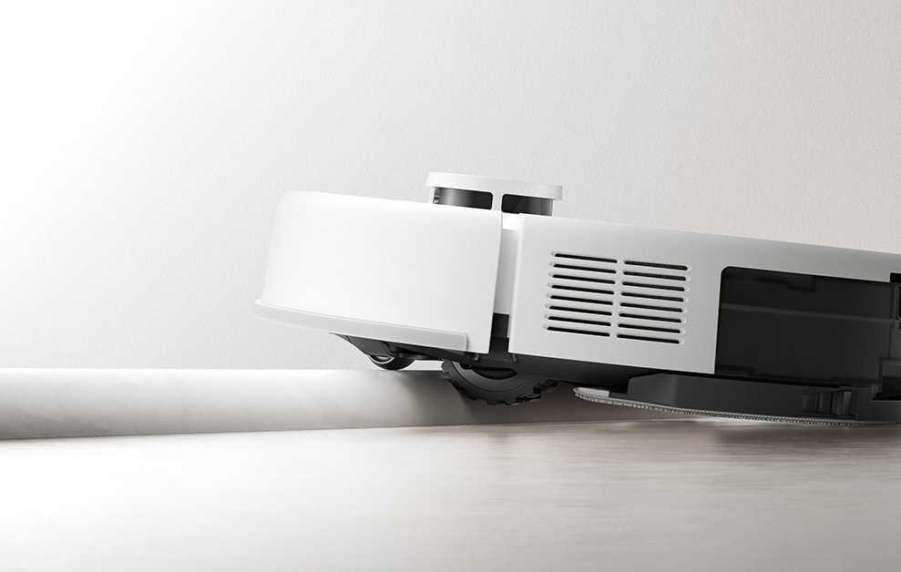 Zintegrowana konstrukcja 2-w-1 umożliwia jednoczesne odkurzanie i mopowanie, bez potrzeby ręcznej zmiany trybu pracy. Robot posiada pojemnik na kurz o pojemności 330 ml oraz zbiornik na wodę 245 ml z trzystopniową elektryczną regulacją dozowania wody. System dba o utrzymanie stałej wilgotności ściereczki, co przekłada się na skuteczne mycie podłóg bez smug, nadmiernego moczenia i nieprzyjemnych zapachów.