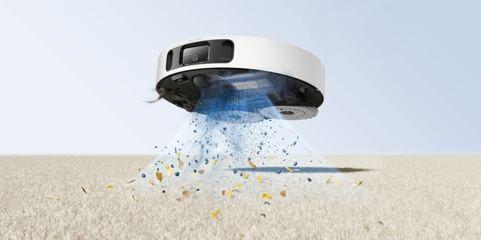 Inteligentna funkcja zwiększenia siły ssania dopasowuje się do poziomu i zwiększa siłę w celu zwiększenia dokładności sprzątania. Gdy jest to możliwe, inteligentnie zmniejsza ssanie, optymalizując zużycie energii akumulatora bez wpływu na skuteczność sprzątania.