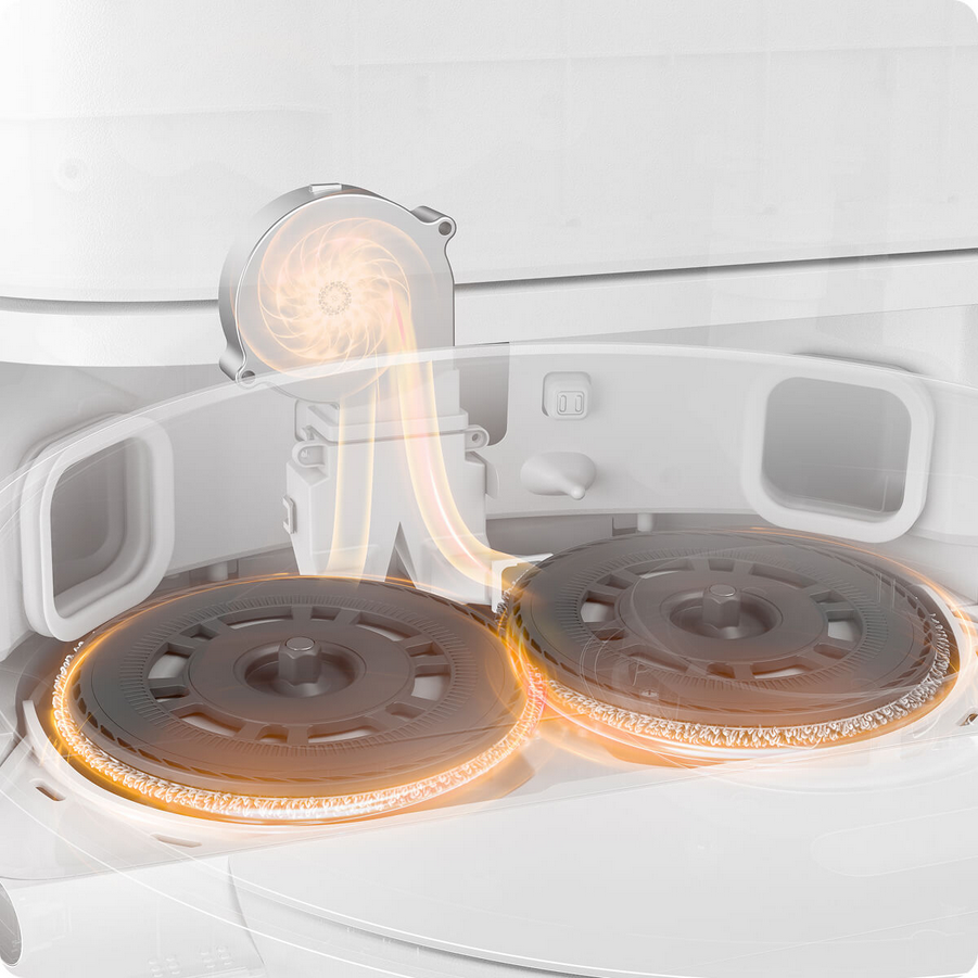 Funkcja automatycznego suszenia mopa wykorzystuje gorące powietrze, dzięki czemu mop szybko wysycha po każdym sprzątaniu, co skutecznie zapobiega powstawaniu nieprzyjemnych zapachów. Dzięki tej wydajnej funkcji suszenia Twój dom jest czysty, a powietrze świeższe.