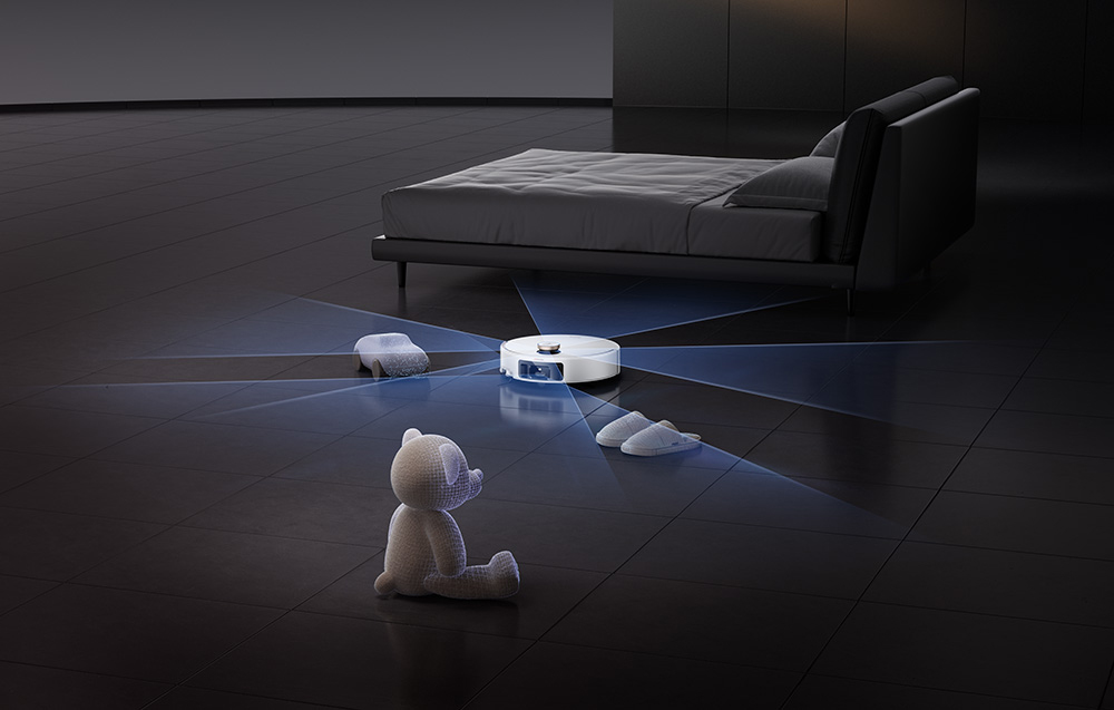 Dzięki niskiej konstrukcji (96 mm) i technologii DToF robot bez problemu wjeżdża pod niskie meble i skutecznie nawigując w ciasnych przestrzeniach. W otwartej przestrzeni czujnik DToF automatycznie się unosi, umożliwiając robotowi pełne, 360-stopniowe skanowanie otoczenia i precyzyjne mapowanie pomieszczeń.