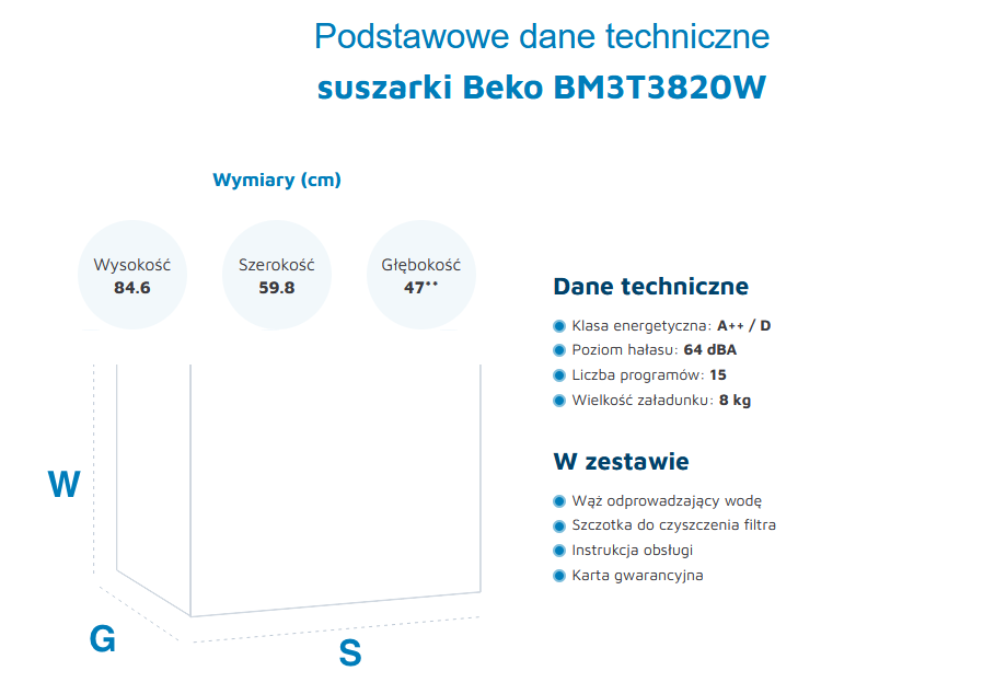 Suszarka Beko BM3T3820W 8kg Pompa Ciepła