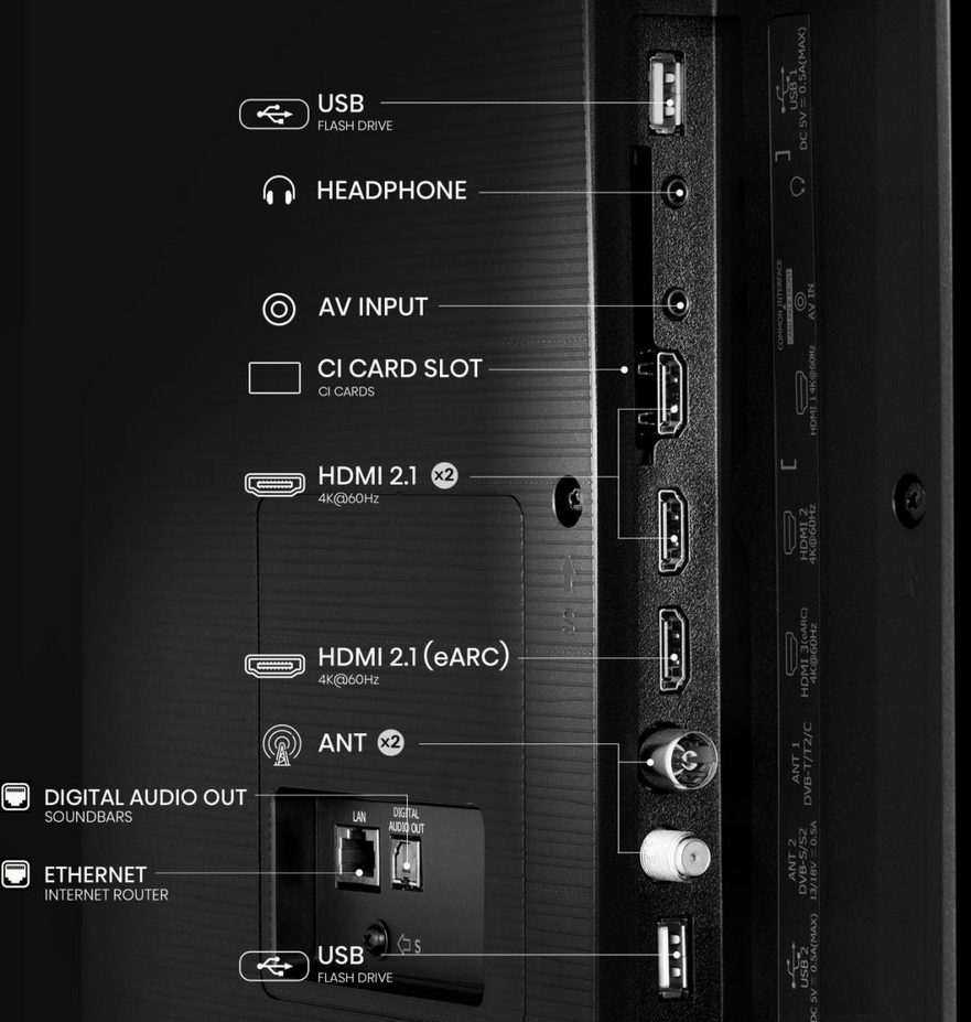 - Złącze HDMI3: HDMI2.1/eARC, ALLM, VRR (60HZ)