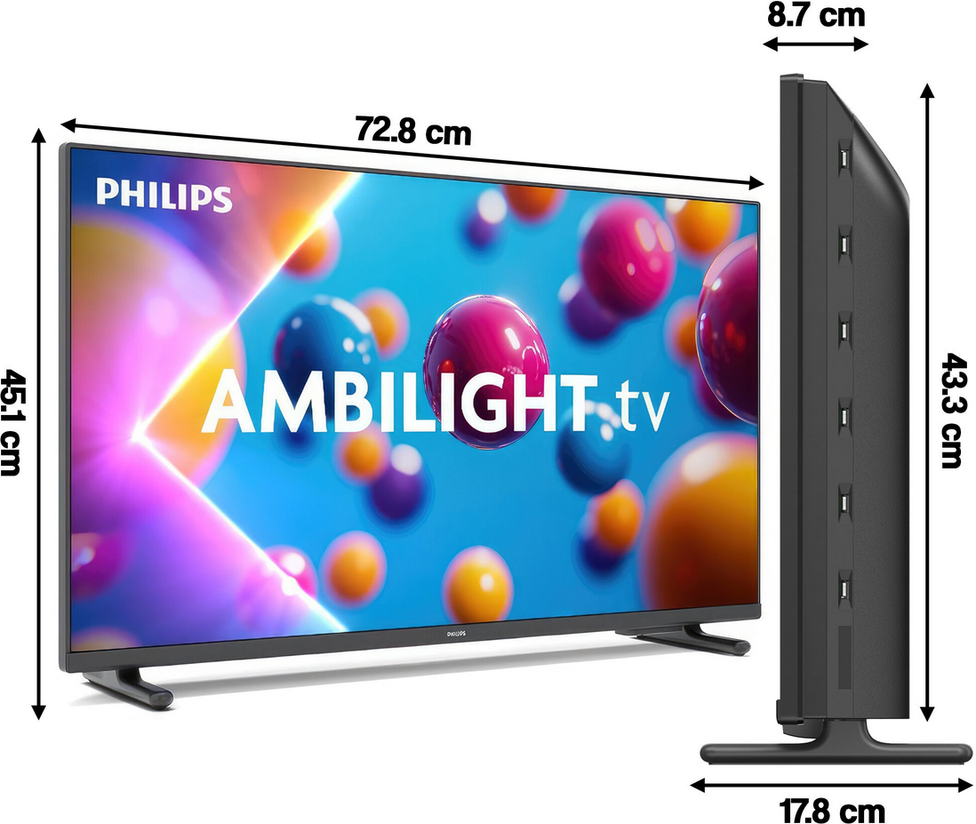 Kompaktowy ekran. Inteligentny wydatek. Wysoka jakość obrazu i dźwięku. Dzięki Ambilight, który wykracza poza ekran i wszystkim treściom Smart TV, które uwielbiasz oglądać w rozdzielczości Full HD, ciesz się bardziej wciągającymi wrażeniami podczas oglądania w domu lub w podróży.