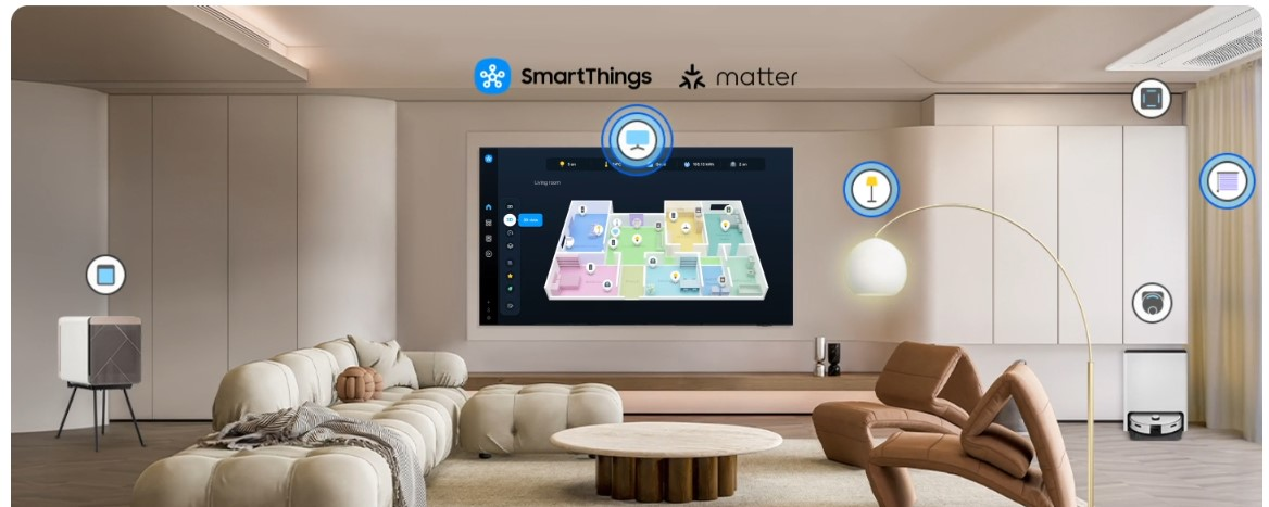 Zoptymalizuj swoje urządzenia domowe, aby były dostosowane do inteligentego stylu życia i Twoich potrzeb, z naszym Wbudowanym Hubem SmartThings. Ciesz się spersonalizowanym smart domem, w którym tysiące urządzeń kompatybilnych ze SmartThings ułatwiają Ci codzienne życie. Dodatkowo wykorzystaj swój ekran jako czujnik IoT, aby zadbać o swoich bliskich, i rozszerz rolę telewizora w zarządzaniu domem dzięki funkcji Widok Mapy 3D.