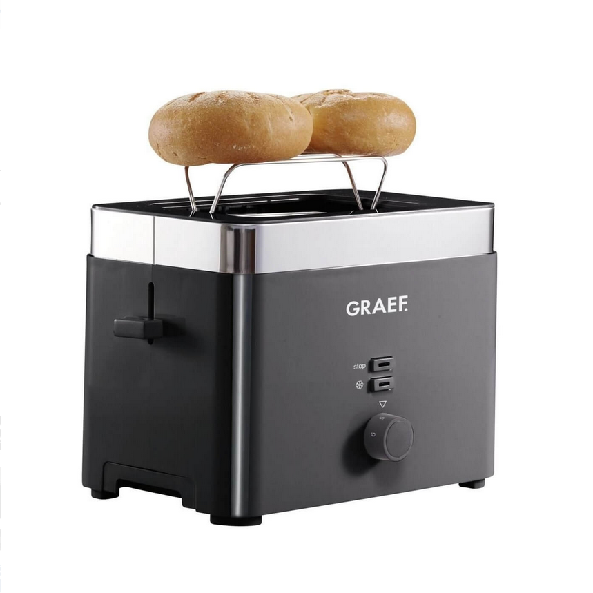 Kompaktowy toster Graef TO 62 na 2 kromki przypiecze Twoje tosty w mgnieniu oka - nawet większe amerykańskie kanapki.