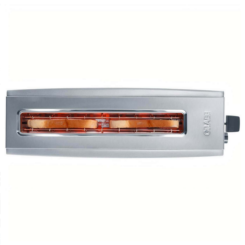 Toster Graef TO 90 w klasycznym srebrnym kolorze przypiecze dla Ciebie jednocześnie 2 grzanki - nawet większe amerykańskie kanapki.