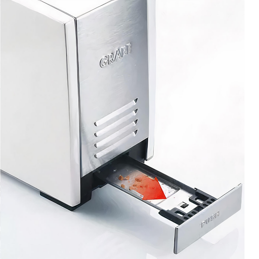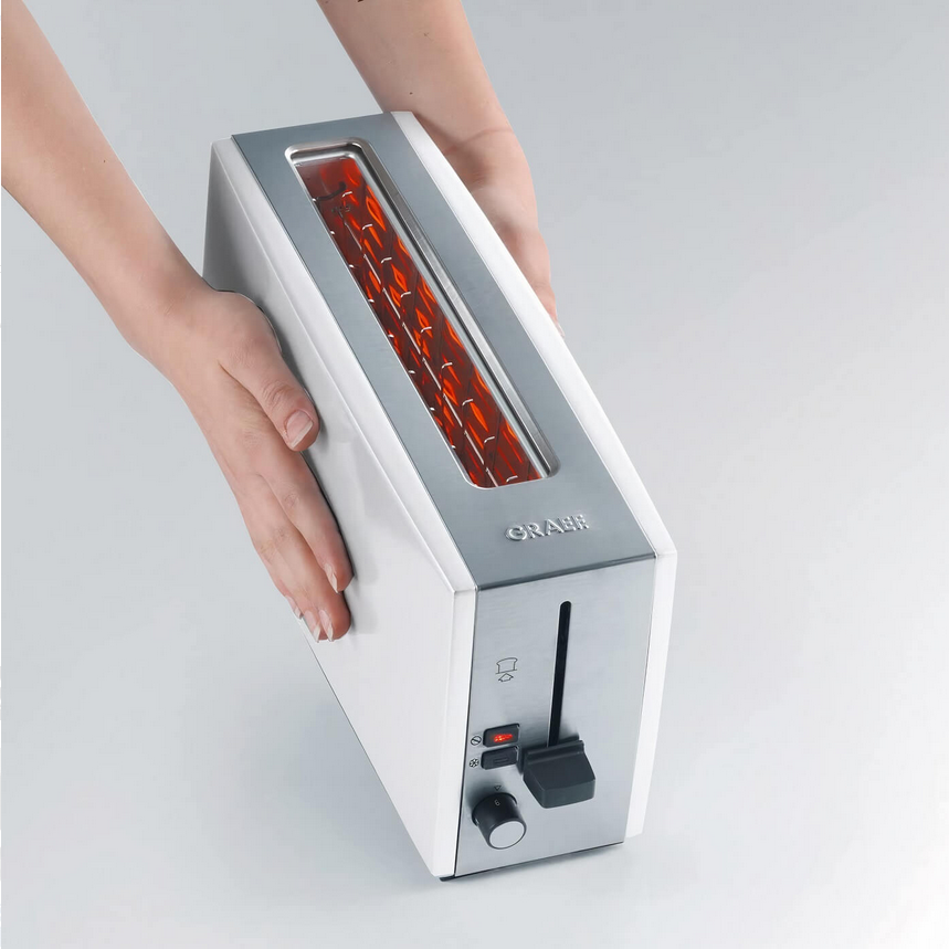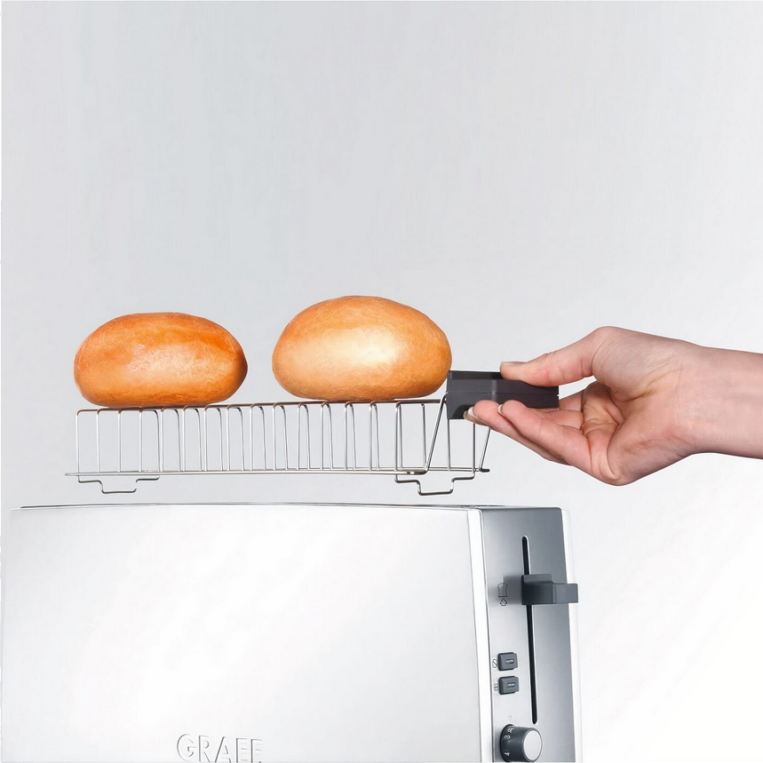 W celu ułatwienia wyjmowania tostów, które w wielu tosterach innych marek bywa problematyczne, w Graef zamontowaliśmy dodatkowy podnośnik do łatwiejszego wyjmowania gotowych kanapek.