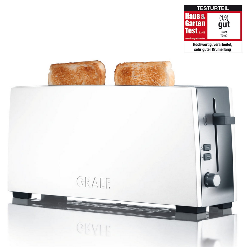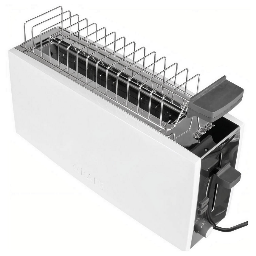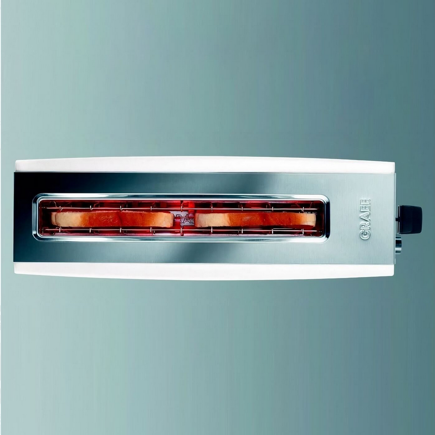 Toster Graef TO 91 w klasycznym białym kolorze przypiecze dla Ciebie jednocześnie 2 grzanki - nawet większe amerykańskie kanapki.