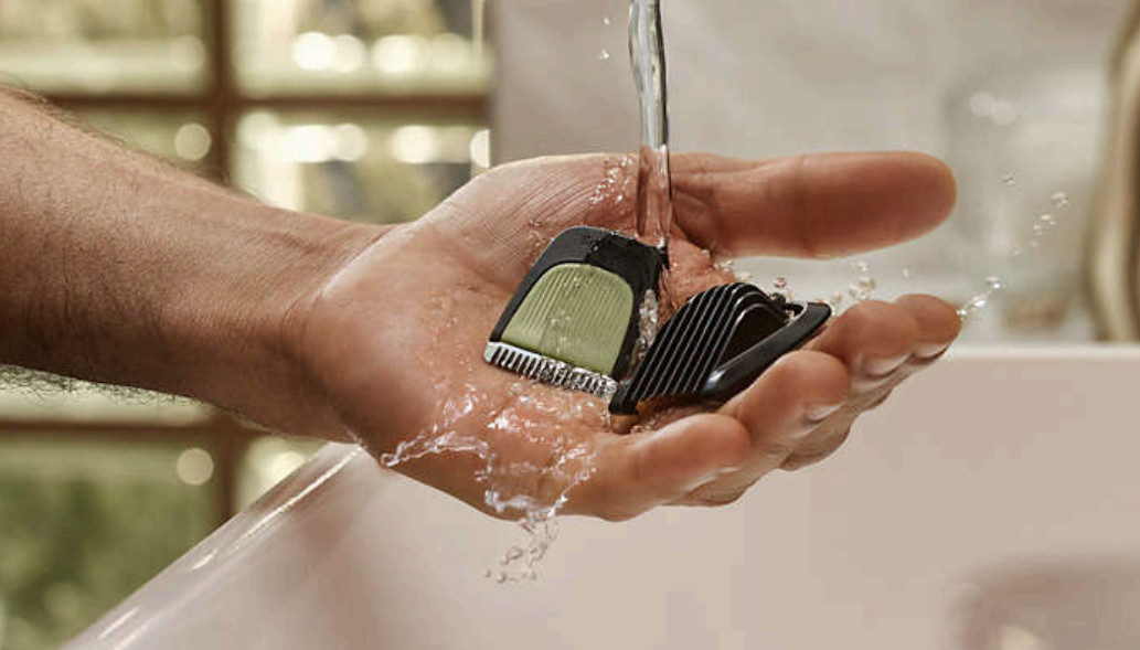 Zdejmij głowicę trymera i opłucz ją pod bieżącą wodą w celu szybkiego i łatwego wyczyszczenia. Następnie wysusz ją przed ponownym założeniem na trymer.