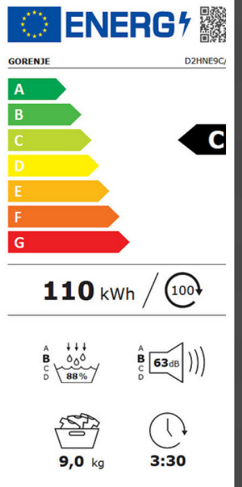 - Klasa efektywności suszenia B