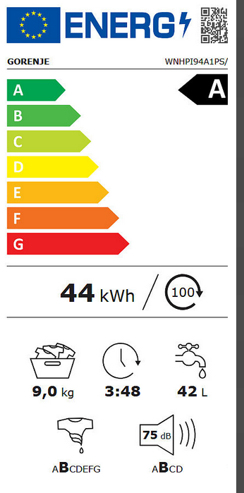 | Klasa efektywności energetycznej pralki | A |