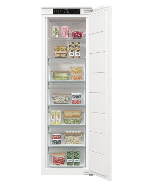 Intensywny obieg chłodnego powietrza eliminuje wilgoć z zamrażarki. Zapobiega to gromadzeniu się szronu na żywności i lodu na ściankach wewnętrznych oraz utrzymuje niskie zużycie energii. W rezultacie pojemność zamrażarki jest optymalnie wykorzystana, a rozmrażanie nie jest już konieczne. Opakowania lub kawałki zamrożonej żywności nie przywierają do siebie, dzięki czemu żywność w zamrażarce jest schludna i uporządkowana.