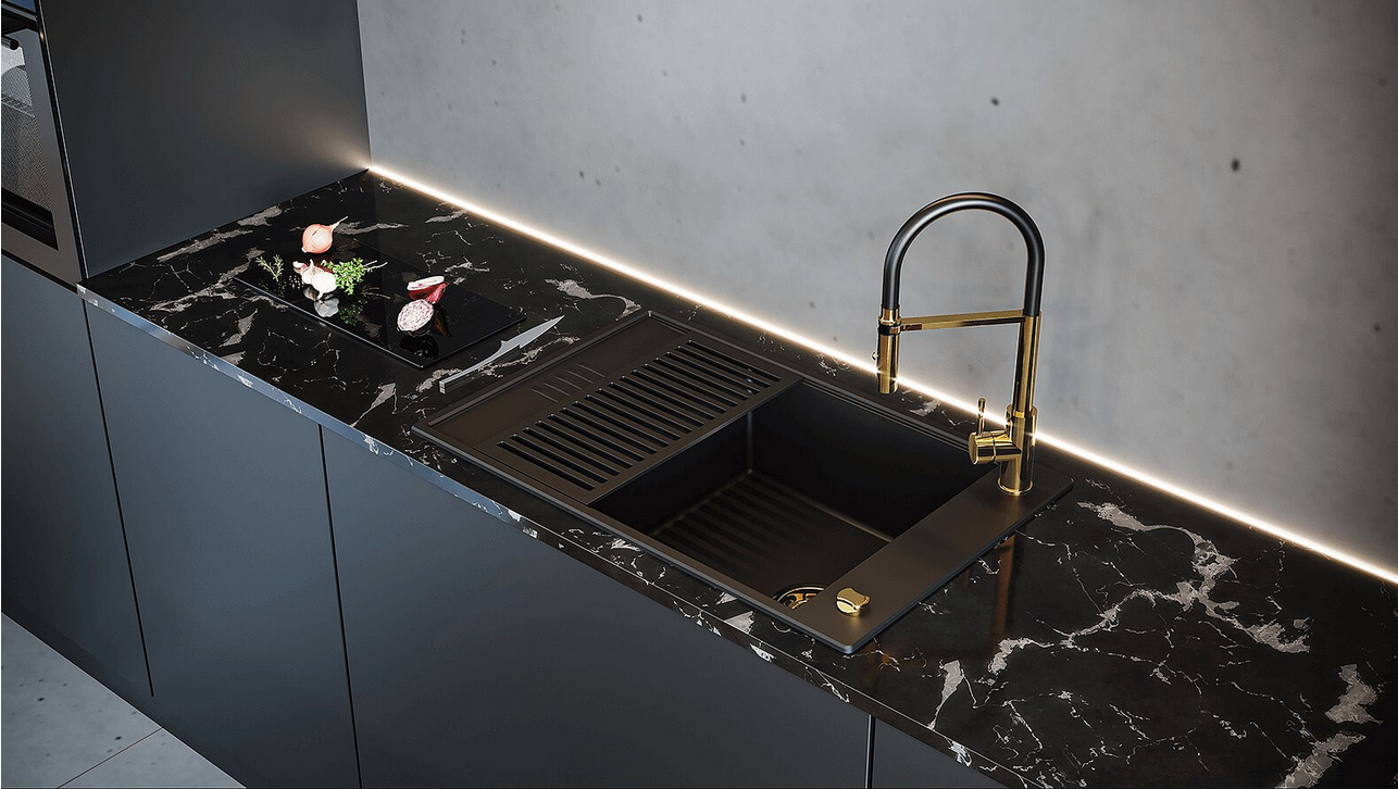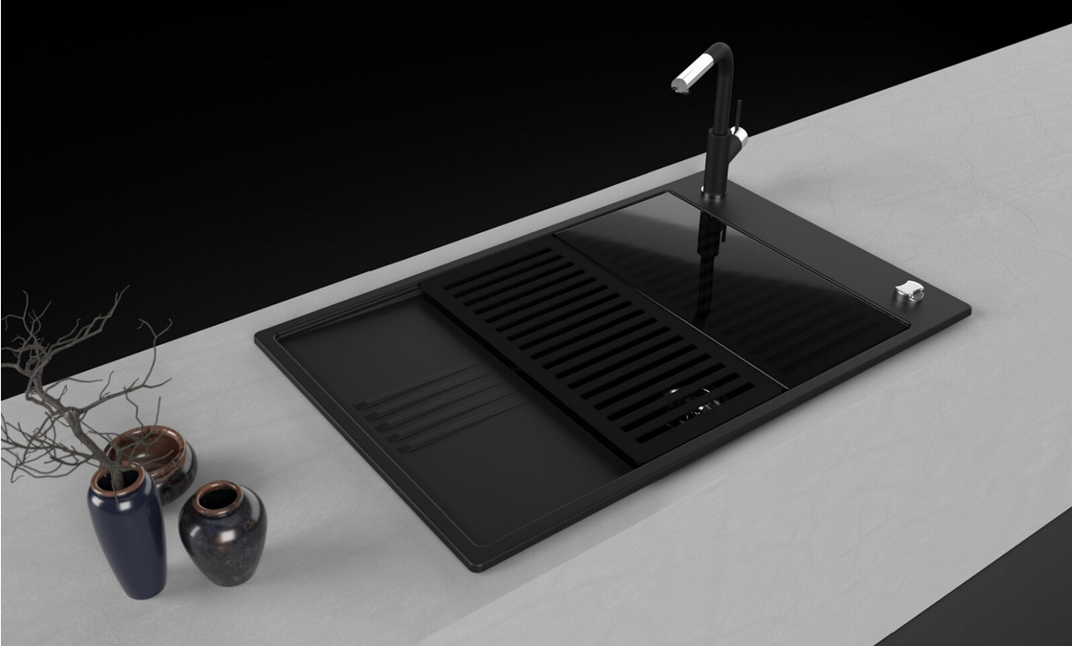 Najważniejszą zaletą zestawu jest jego wytrzymałość. Zlewozmywak wykonany z granitu jest odporny na zarysowania czy uszkodzenia mechaniczne, toleruje również skrajne temperatury, a do gładkiej powłoki nie przywierają zabrudzenia oraz kamień, co ułatwia utrzymanie porządku. Wyjątkowa głębia czerni podkreśli charakter Twojej kuchni, a deskę ze szkła hartowanego możesz śmiało zaprosić do salonu jako luksusową deskę do serów i wędlin.