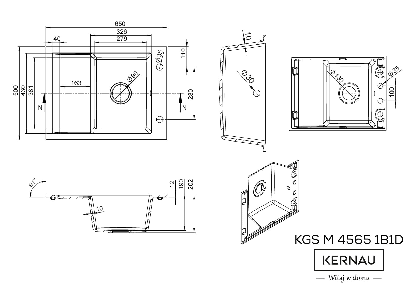 Zlewozmywak granitowy marki Kernau charakteryzuje się wyszukanym designem i zdecydowaną funkcjonalnością. Dostępny jest w następujących kolorach: Sand, Graphite, Black Metallic oraz Pure White. Można go zamontować w szafkach o minimalnej podbudowie 45 cm. Zlewozmywak jest odwracalny, co oznacza dowolność w wyborze strony, po której będzie zamontowany. Może być zlokalizowany z ociekaczem po prawej lub lewej stronie, w zależności od upodobań i preferencji konkretnego użytkownika. Ze względu na tworzywo zlewozmywaka, charakteryzuje się on wysoką odpornością na działanie czynników zewnętrznych, niezwykłą odpornością na uszkodzenia i szok termiczny. Jest stylowy i estetyczny.