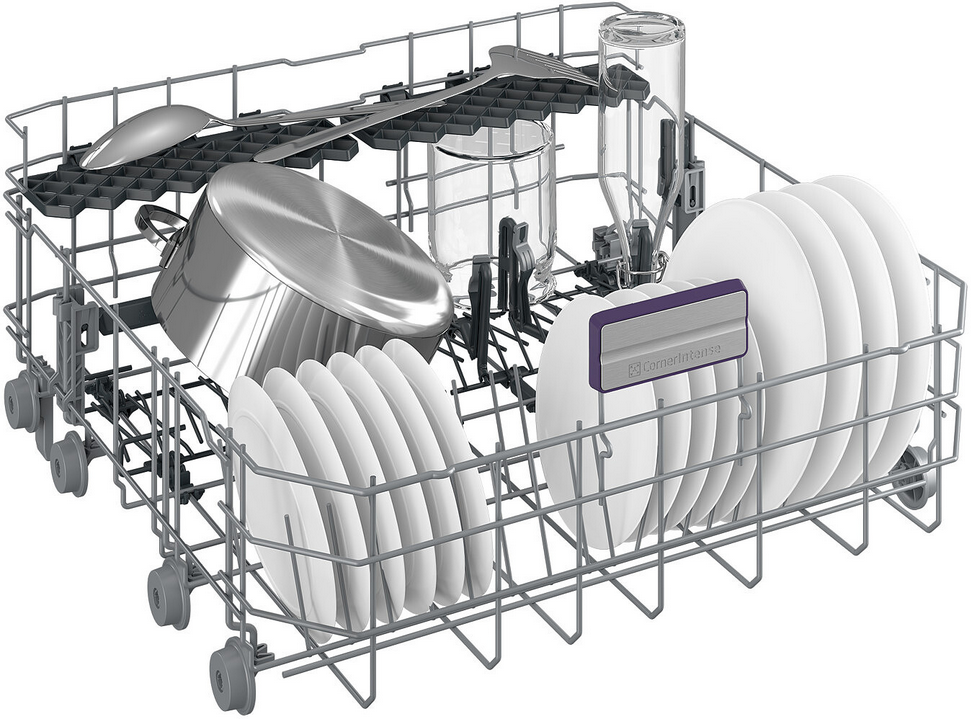 CornerIntense to nowa konstrukcja ramienia myjącego w zmywarkach Beko, która sprawi, że naczynia znajdujące się w rogach urządzenia zostaną bardzo dokładnie umyte. Dzięki dodatkowej obrotowej dyszy myjącej silny strumień wody dotrze nawet do najdalszych zakamarków zmywarki, dzięki czemu nie musisz już drobiazgowo planować ułożenia naczyń w jej wnętrzu.