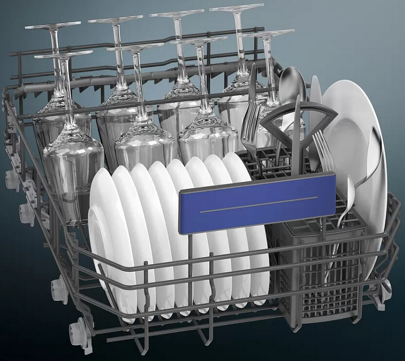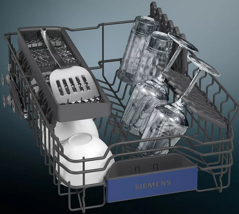 W zmywarkach o szerokości 45 cm zastosowany został system podwójnych ramion spryskujących duoPower™. Dzięki nakładającym się polom działania to pierwsze na świecie dwa ramiona zraszające pokrywają całą zawartość górnego kosza, który przedłużono o 4 cm. Zapewnia to optymalne rozprowadzanie wody — a tym samym bardziej wydajne zmywanie oraz olśniewająco czyste naczynia. Kontrolowane, precyzyjne spryskiwanie stwarza ponadto idealne warunki mycia dla delikatnego szkła, zapewniając kieliszkom i szklankom nieskazitelną czystość i doskonały wygląd.