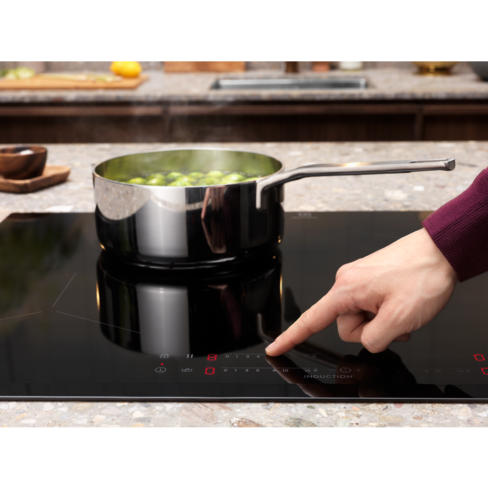 Płyta indukcyjna SenseBoil® 700 potrafi sama dopilnować gotowania wody. Automatycznie reguluje temperaturę, gdy płyn zbliża się do punktu wrzenia, po czym zmniejsza moc grzania, aby podtrzymać jego powolne gotowanie. Pozwala to skupić się na przyrządzaniu pysznych potraw zamiast na pilnowaniu wody.